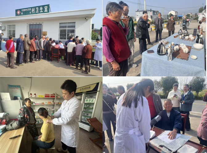 智慧康养学院的师生为村里的老人们提供了测量血压、血糖监测、健康咨询等服务,现代商旅学院的师生为老人们提供了茶艺及品茶的服务。