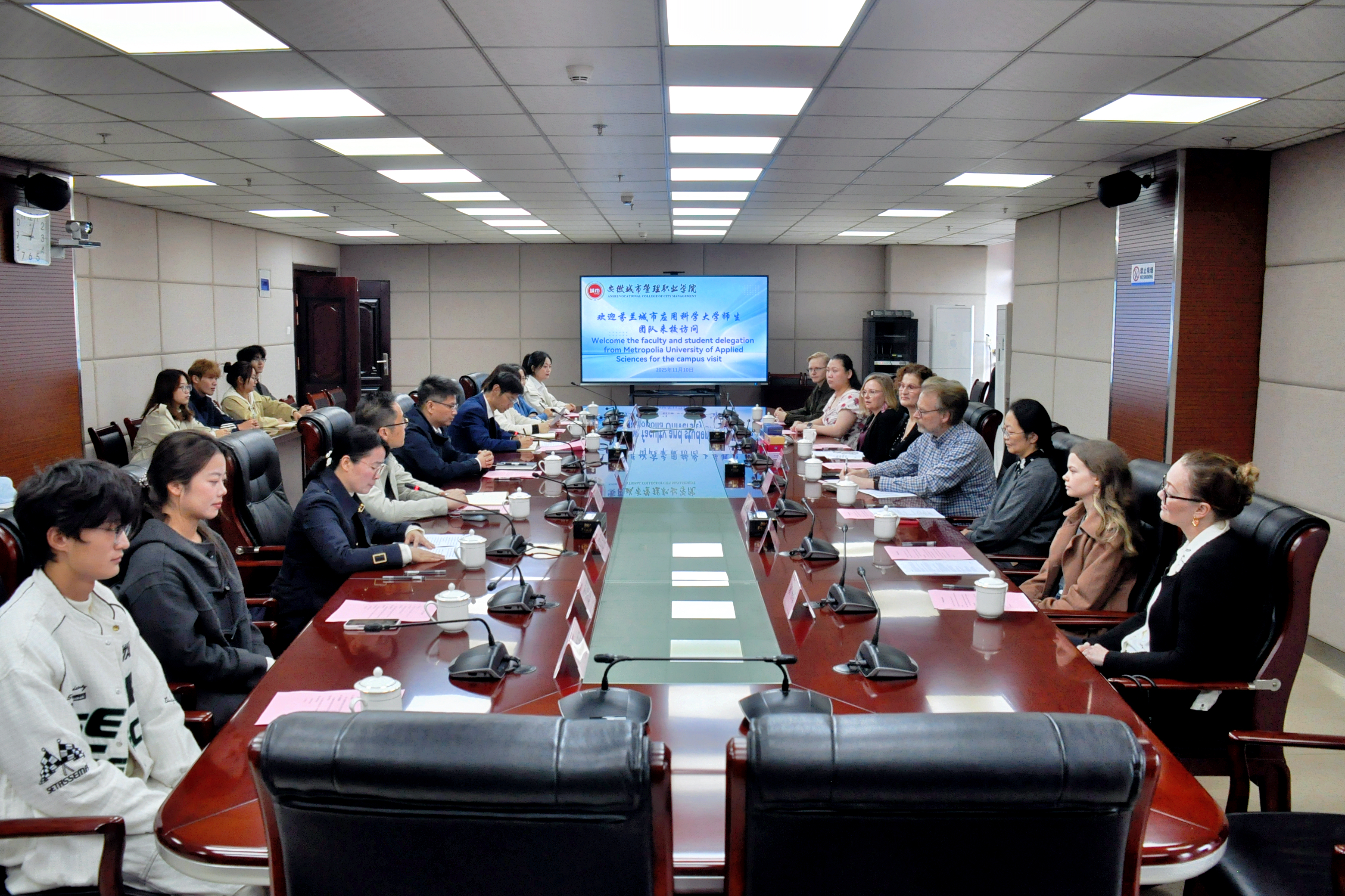 11月10日,芬兰城市应用科学大学团队来我院交流访问。学院党委书记晏祥,党委委员、副院长张昊出席座谈会,相关部门负责人参加会议。