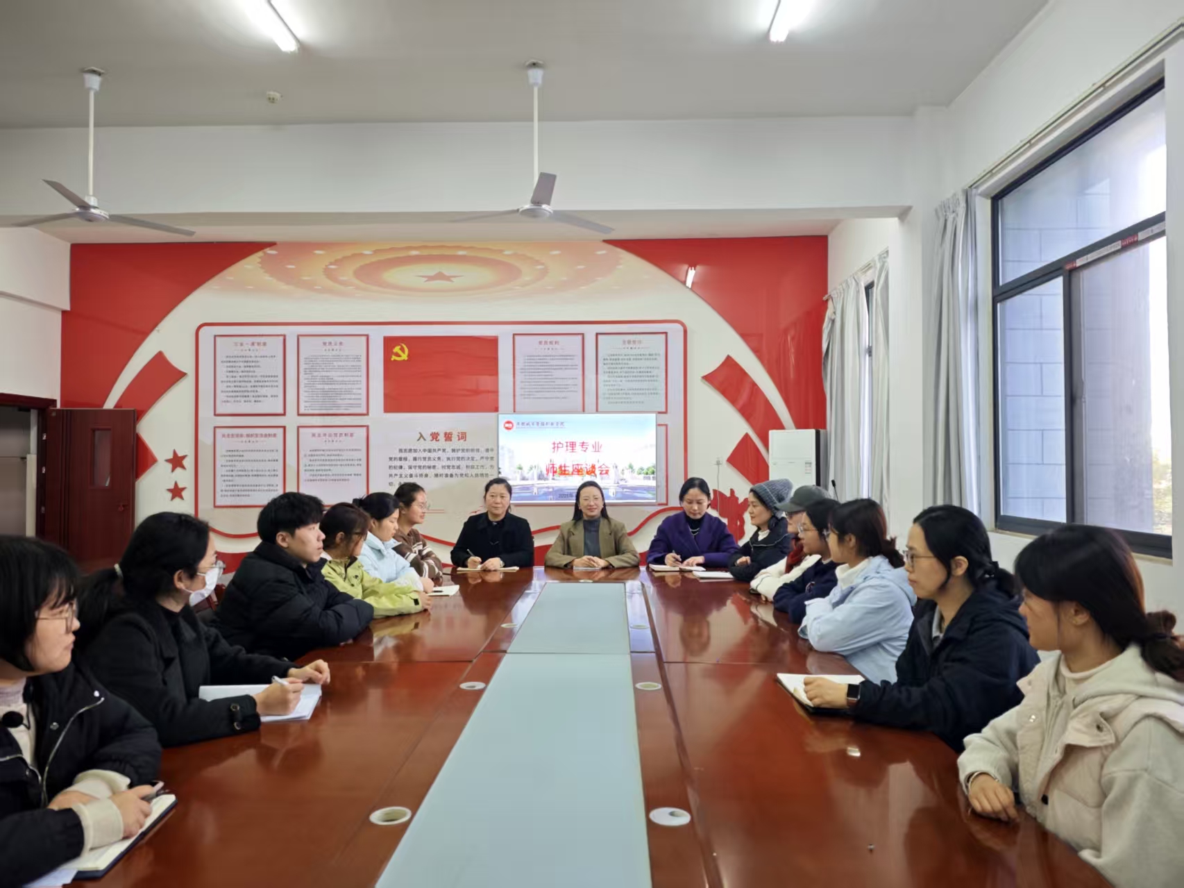 11月19日,护理教研室主任周福君及教研室老师,在D301会议室召开了面向2024级、2025级学生的师生座谈会暨学业预警教育会。