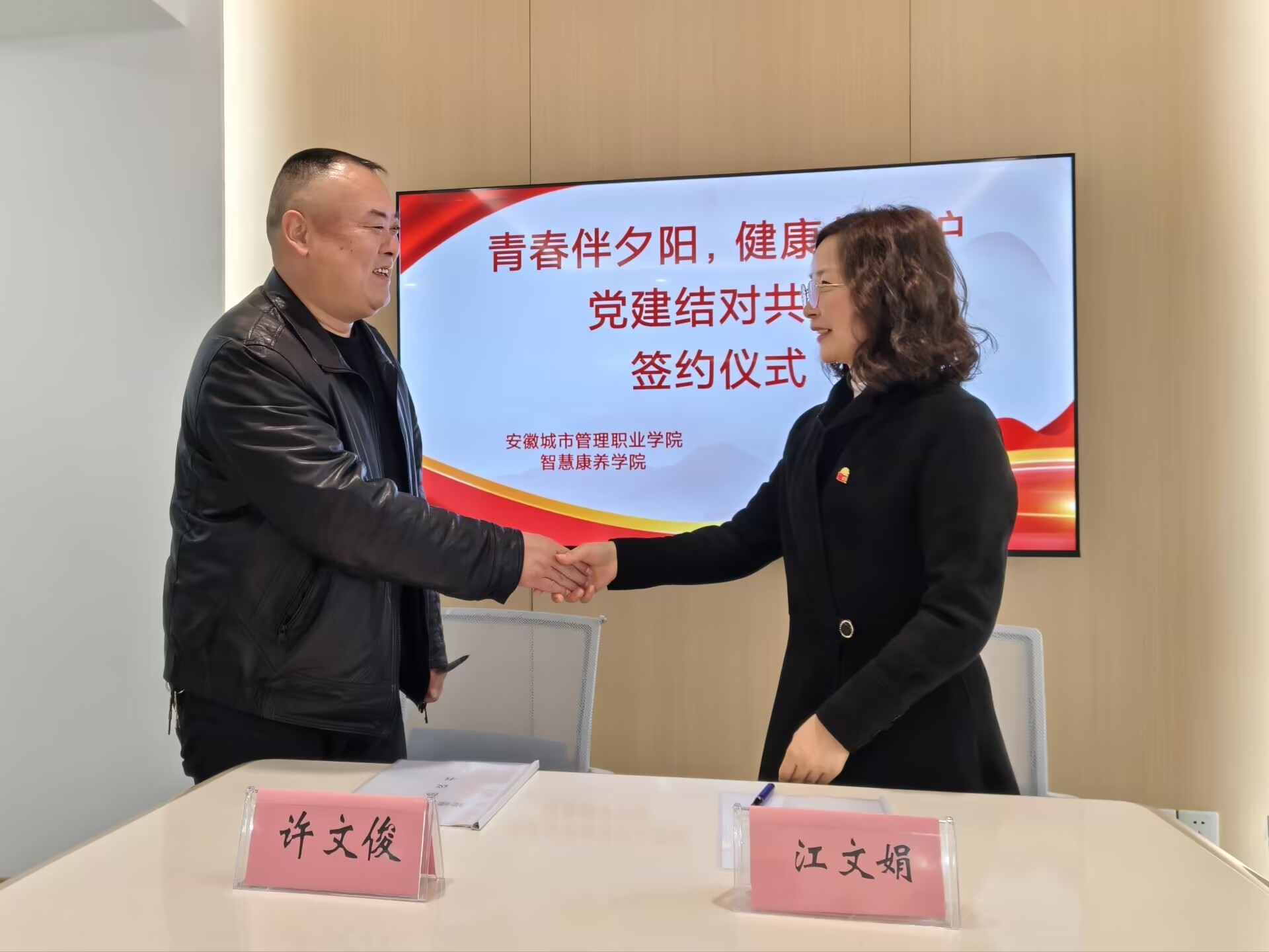 为深化产教融合、践行职业教育社会服务职能,搭建校社协同服务平台,2026年4月1日下午,安徽城市管理职业学院智慧康养学院第二党支部与合肥市光明社居委,在光明社居委二楼会议室举行 “青春伴夕阳,健康共守护” 党建结对共建签约仪式,并开展首场便民义诊理疗活动。