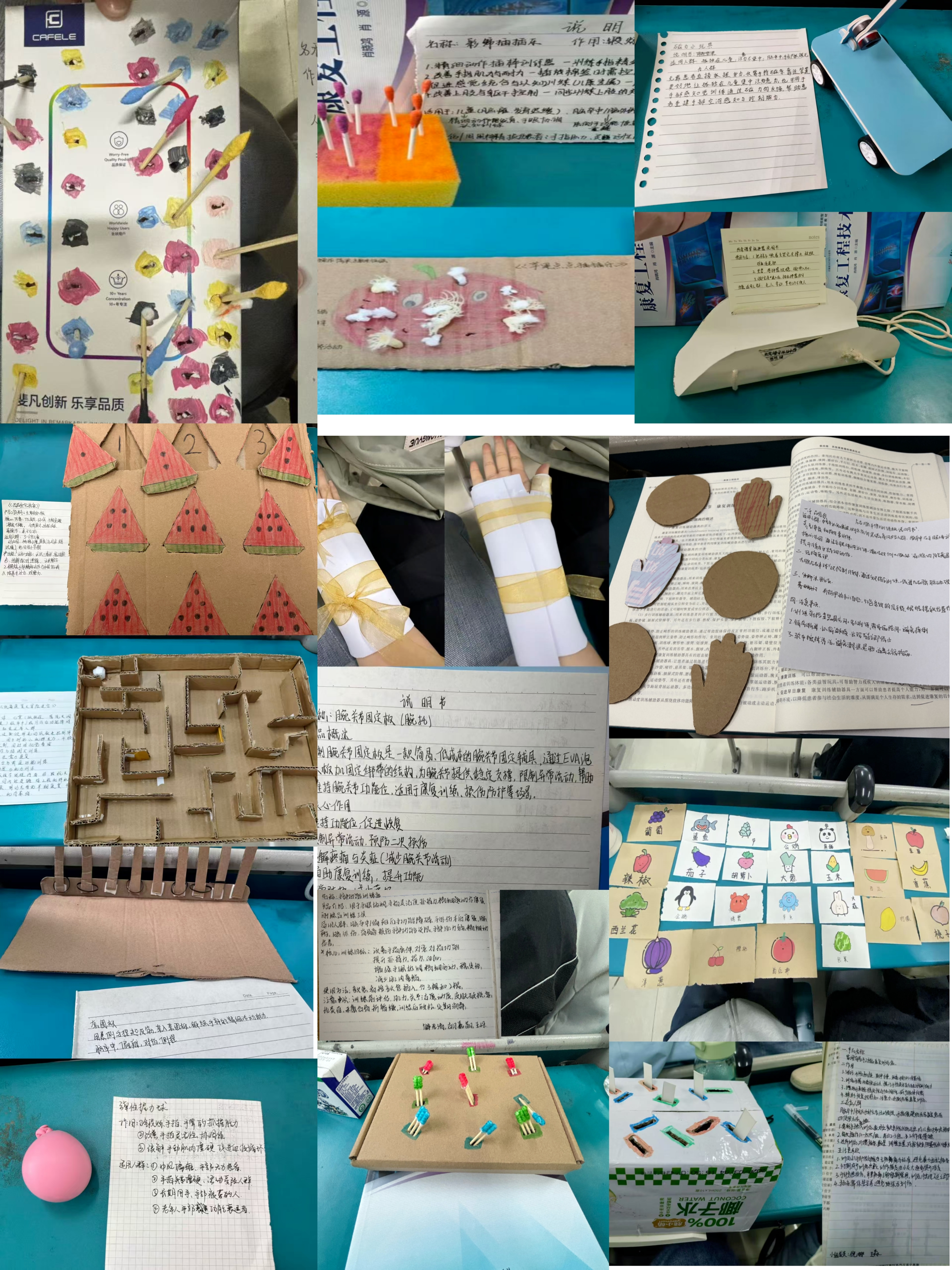 劳动的开端,是认真筹备的用心。为了做出实用、安全的简易辅具,学生们提前查阅资料,挑选身边易得的环保废旧材料,废旧气球、硬纸板、弹力布条,这些看似不起眼的旧物,在劳动中即将焕发出新的价值;劳动的过程,是亲手创造的专注。制作辅具的每一步,都考验着同学们的耐心与动手能力。亲手做出的辅具,能够为需要的人提供康复帮助,让同学们明白劳动不仅能创造价值、提升自我,更能传递温暖、帮助他人。
